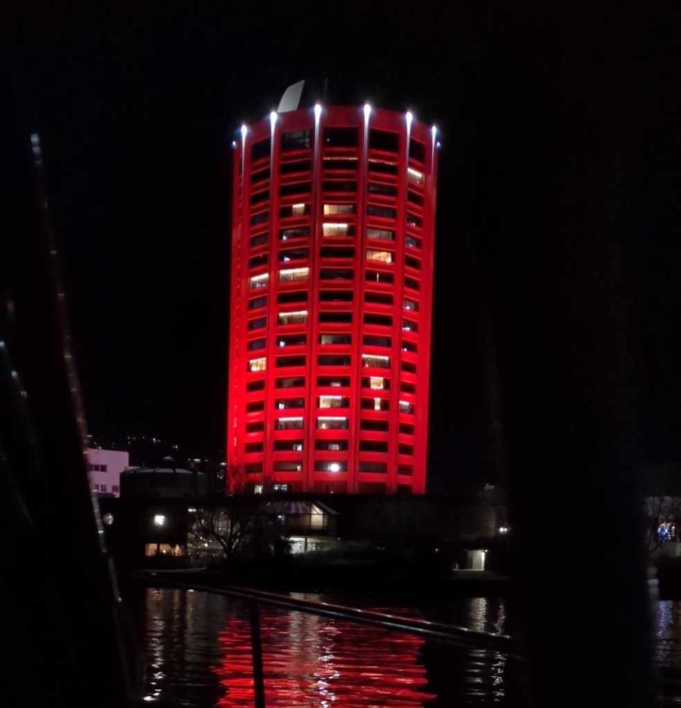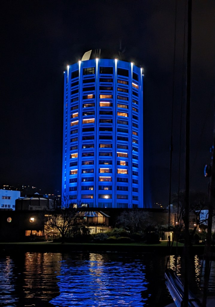 We had a lovely dinner created by Kaz and sat in the cockpit chatting with a quiet drink admiring the colour changing casino.
