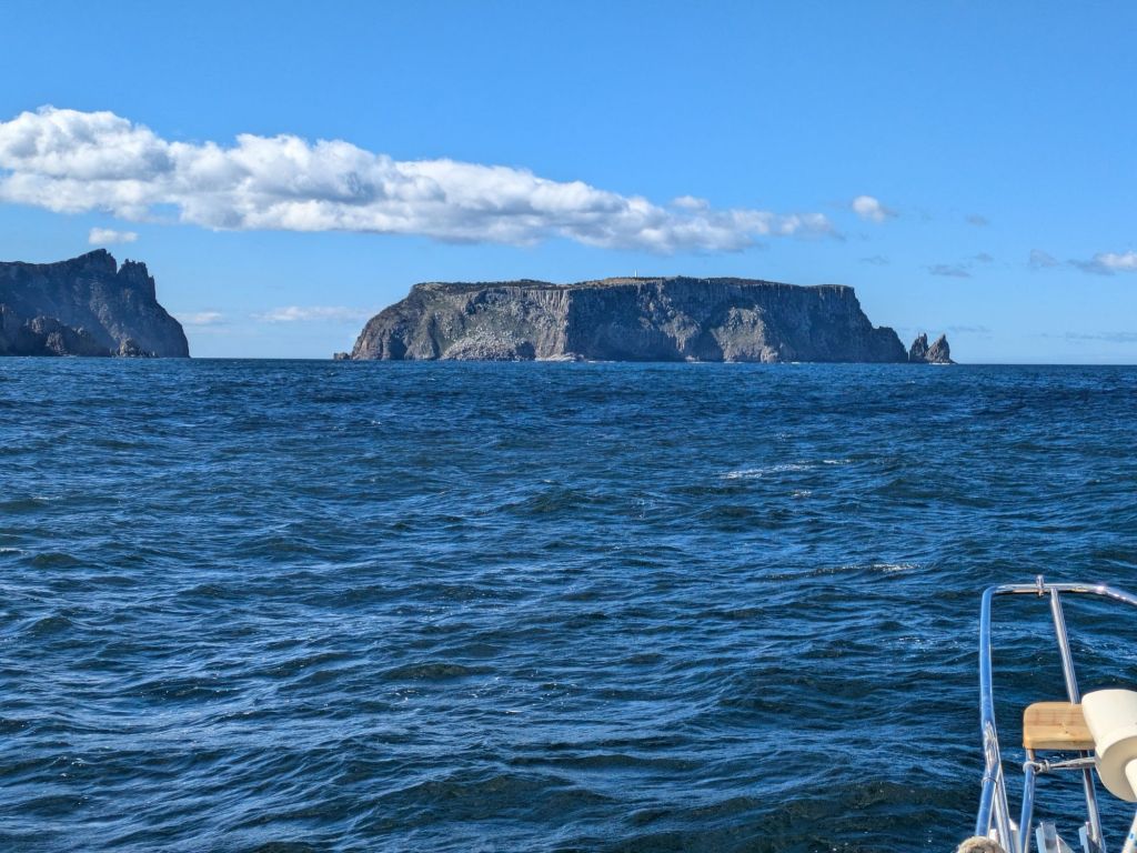 Once we got a little further out the swell dropped to around a metre with a 20ish knots of wind coming in forward of the beam, we put out a bit of mainsail to help stabilise the boat and give us a little more speed as we headed towards The Lanterns and Hippolite rocks.