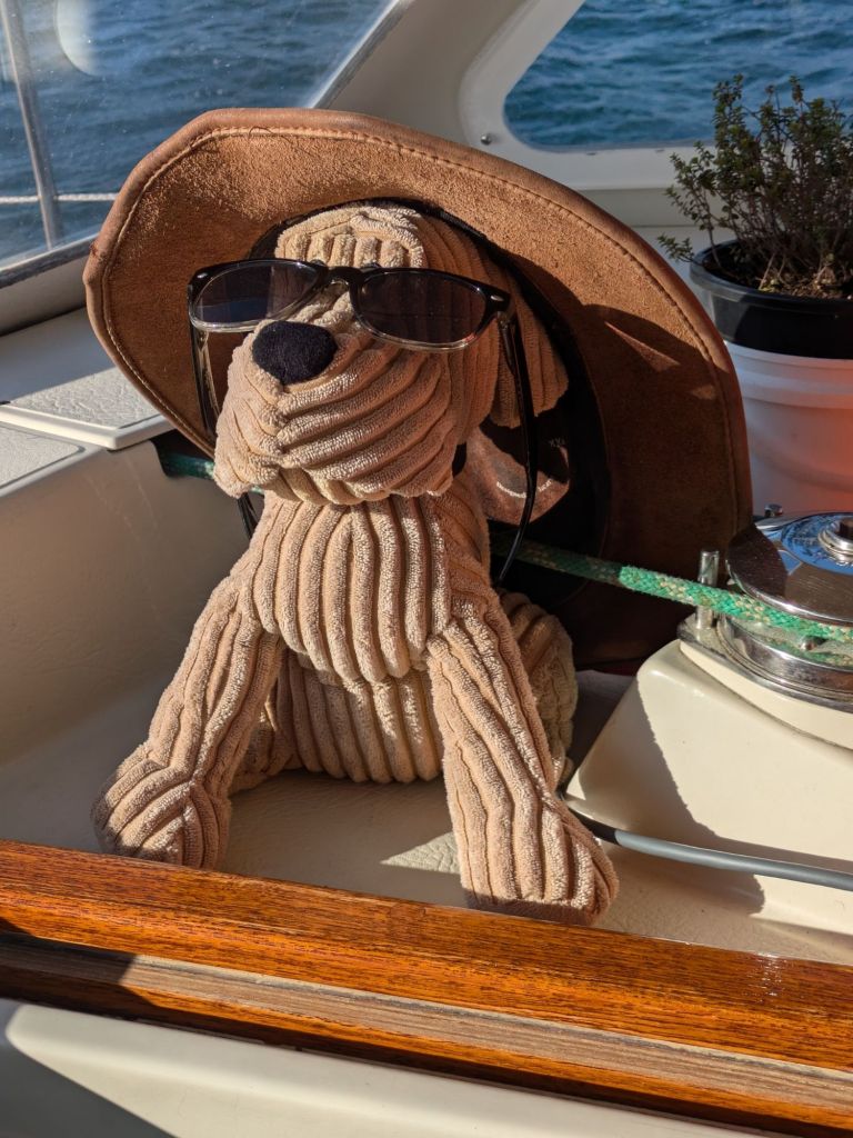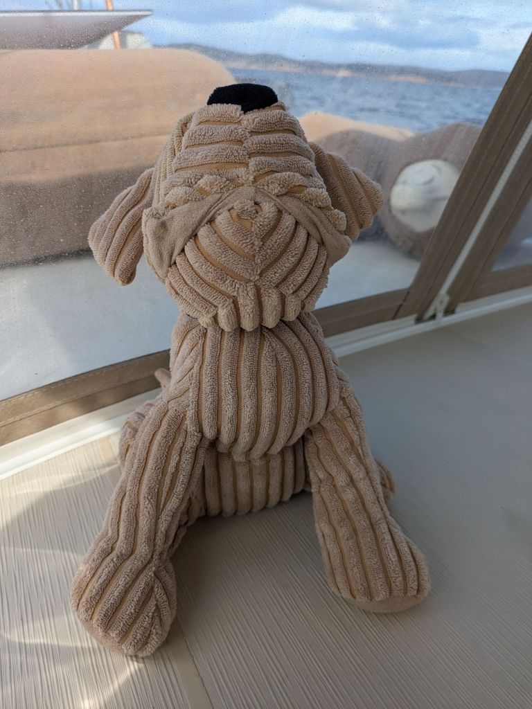He’s our mascot and gets up to antics around the boat, hiding under pillows, inside cupboards, you just never know where he’ll appear.