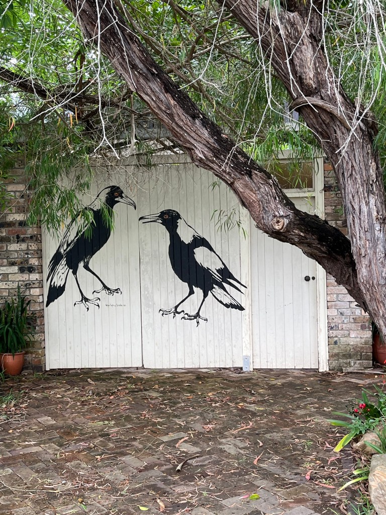 A slow sail got us there mid afternoon with enough time to walk around the village of Patonga admiring the artwork on garage doors and the flower litter from the jacaranda trees.